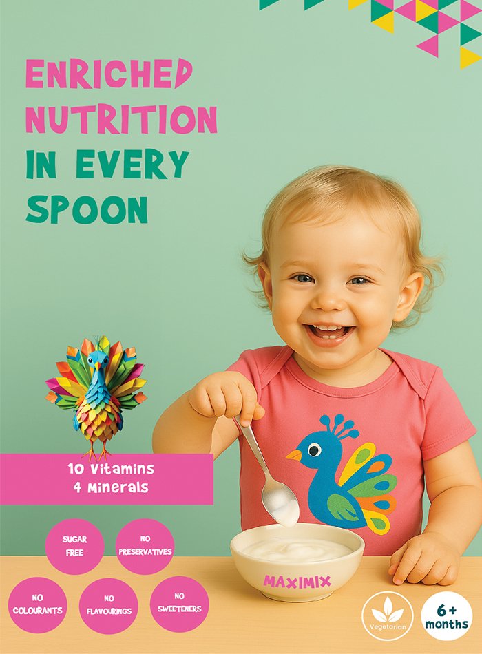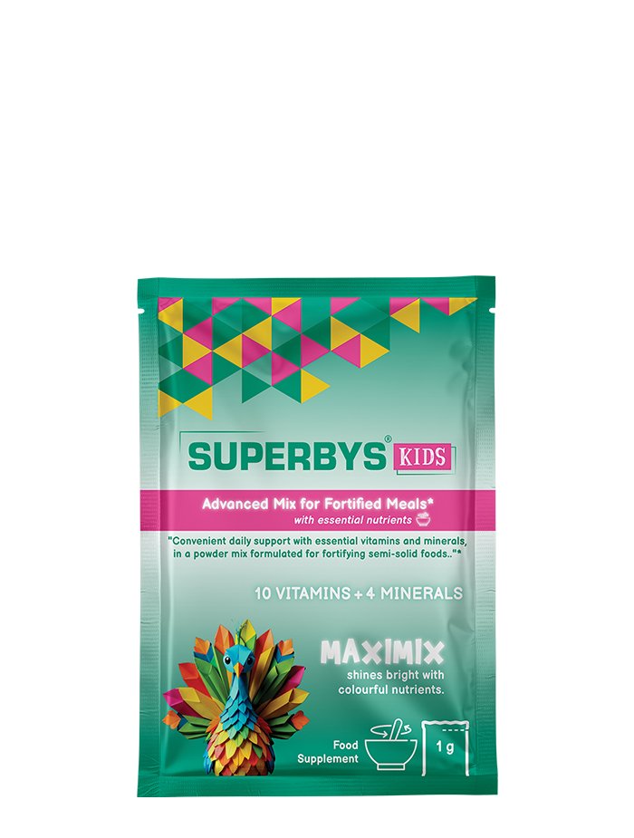 Convenient daily support with essential vitamins and minerals, in a powder mix formulated for fortifying semi- solid foods